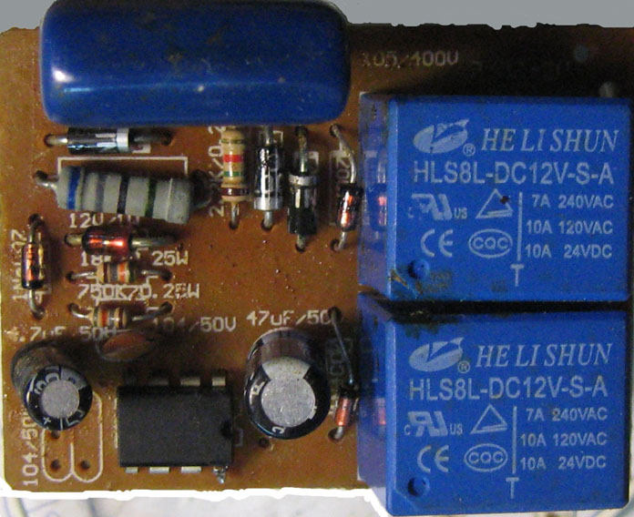 Im Aussehen ist das Gerät recht einfach. Auf der Platine befinden sich zwei Relais, eine Mikroschaltung und mehrere Teile, die etwas größer als die Streichholzschachtel sind. Das Aussehen der Platine ist in Abbildung 1 dargestellt.
